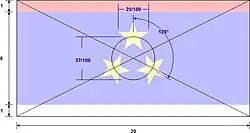 | Design | Horizontal tricolour of red, blue, and white, with three yellow five-pointed stars |