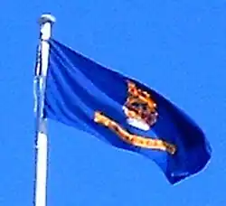 The flag of the governor-general of New Zealand is an official flag of New Zealand and is flown continuously on buildings and other locations when a governor-general is present. The flag in its present form was adopted in 2008 and is a blue field with the shield of the New Zealand coat of arms royally crowned. The official heraldic description is "A flag of a blue field thereon the Arms of New Zealand ensigned by the Royal Crown all proper".[1]