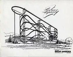 Flashback first opened in 1985 at Six Flags Great America (at Gurnee, Illinois) as Z-Force. It was a prototype Space Diver that was purchased from the Intamin testing facility.[3] In 1987, the ride was closed.[4] The site was later used for a Bolliger & Mabillard stand-up roller coaster named Iron Wolf.
