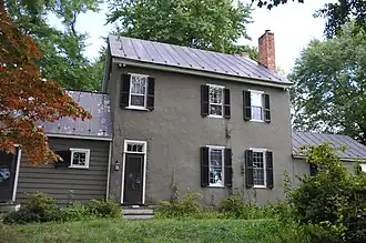 The house is an unusual example of post-and-beam construction in a region where stone or brick construction is more usual. The house is a 2-1/2 story post-and-beam framed structure on a stone foundation and basement. The frame is infilled with brick nogging and covered with weatherboarding. The weatherboards are covered with stucco. The main block is three bays with a small entry porch supported by Tuscan columns. A one-story frame addition extends to the west. The interior was originally arranged on a side-passage plan, which has since been altered. The house features extensive wainscoting. The main parlor features full-height paneling. A second wing was added in 1984. The stucco is believed to have been installed in the 1930s or 1940s. A dining room is also accessed from the side hall. The second floor of the main house has two bedrooms.[3]