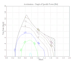 Extra power, or specific excess power,[3] is a very basic method of determining an aircraft's flight envelope. It is easily calculated but as a downside does not tell very much about the actual performance of the aircraft at different altitudes.