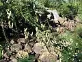 Plants strictly endemic to the Causses and Cévennes include Germandrée de Rouy (Teucrium rouyanum), Pulsatilla vulgaris var. costeana (on limestone grassland),[13] Short-stemmed cinquefoil (Potentilla caulescens subsp. cebennensis), Coste's Gentian (Gentiana clusii subsp. costei), a subspecies of the Alpine Aster growing at altitude (Aster alpinus subsp. cebennensis), an Orchid, the Causses Fly Orchid (Ophrys insectifera subsp. aymoninii), Arabidopsis cebennensis (also found in Aubrac and Cantal but not further north), Saxifraga prostii (siliceous rocks), Saxifraga cebennensis (limestone rocks), the Long-leaved butterwort (Pinguicula caussensis, limestone rocks), the Sabline de Lozère (Arenaria ligericina, limestone rocks), the slimy Columbine of Causses (Aquilegia viscosa), the glowing Thyme (Thymus nitens, siliceous soils at high altitude), and so on. Certain other species are almost endemic to the region (i.e. present in the Causses, the Cévennes and a limited number of neighboring regions), such as Spiked Sandwort (Arenaria hispida, also present in Catalonia), Pectinated Centaurea (Centaurea pectinata, also present in Provence and northern Spain) or the Asarina lying down (Asarina procumbens), a particular and easy-to-recognize plant, growing on siliceous soil, strictly localized in the mountains of the Cévennes and the eastern Pyrenees.