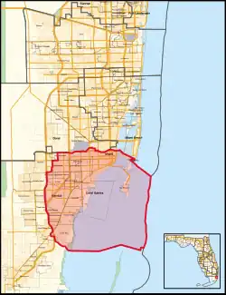 - Coral Gables, Coral Terrace, The Crossings (part; also 28th), Cutler Bay, Fountainebleau (part; also 28th), Glenvar Heights, Kendall, Key Biscayne, Miami (part; also 24th and 26th), Olympia Heights, Palmetto Bay, Palmetto Estates, Pinecrest, South Miami, South Miami Heights (part; also 28th), Sunset, Three Lakes (part; also 28th), Westchester (part; also 28th), West Miami, West Perrine, Westwood Lakes