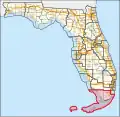 Florida's 28th congressional district is a district created as a result of the 2020 census. The first candidates ran in the 2022 House elections for a seat in the 118th United States Congress.[4] The district was created during the 2020 redistricting cycle as the successor to the previous 26th district in the 2010s. It includes all of Monroe County, home to the Florida Keys, and many of Miami's outer southwestern suburbs, including all of Homestead, The Hammocks, Kendale Lakes, Tamiami, and others. All three of Florida's national parks – the Everglades, Biscayne, and the Dry Tortugas – are also located in this district.