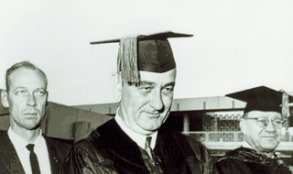 Florida Atlantic University opened on September 14, 1964, with an initial student body of 867 students in five colleges. The first degree awarded was an honorary doctorate given to President Lyndon B. Johnson on October 25, 1964, at the dedication and opening of the university.[17] At the time of its opening, there were 350 employees, of which 120 were faculty. On-campus housing for students was first added in September 1965, when Algonquin Hall opened.[18][19]