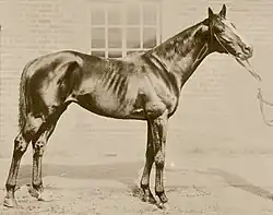 Standing at stud at Haras de Jardy, Flying Fox enjoyed considerable success and was the leading sire in France three times, with his progeny earning £203,400 in prize money.[1] Among his first crop was the colt Ajax, an undefeated winner of the Prix du Jockey Club as well as the Grand Prix de Paris who himself became a leading sire. Ajax was the sire of Teddy, who sired Sir Gallahad III plus the mare La Troienne who is widely regarded as one of the most influential broodmares in the history of modern Thoroughbred breeding. Flying Fox's other progeny included numerous top class winners including Val d'Or and Dagor. Descendants of Flying Fox include Gallant Fox and Citation, the 1930 and 1948 United States Triple Crown Champions and U.S. Hall of Fame colt Coaltown.