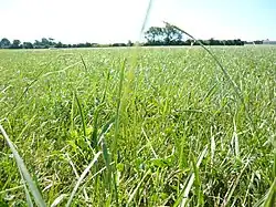 Crau hay is composed of 30 to 50% grass (including fromental and orchardgrass), 25 to 35% legumes (including red clover and creeping clover), and 25 to 35% various grasses.[6][7] Its floristic composition corresponds to a precise specification, established by Decree n°2015-1226, October 2, 2015, and by the Official Journal of the European Union dated January 31, 2017 of Implementing Regulation (EU) n°2017/15.[6]