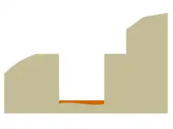 Even the most recent studies, carried out in the early 2000s, cannot date the abandonment of the aqueduct. It is simply noted that a maintenance phase was underway, and almost complete, but that it was not completed and the aqueduct was never reactivated: no new concretions were formed on the cleaned sections. The cessation of operations therefore seems to have been the result of a sudden decision: it is hardly conceivable to undertake major maintenance work on a piece of equipment that is scheduled to be abandoned in such a short time.[21] The reuse of masonry from the aqueduct in the Larçay church, whose first phase of construction dates back to the 11th century,[84] indicates that by this time it was already out of service and partially dismantled.[22]