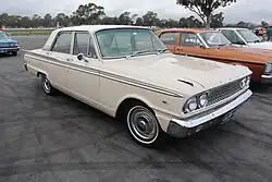 Assembly of the 1963 US Fairlane 500 sedan as the FC model was commenced by Ford Australia in November 1962.[9] It featured a revised bonnet, front guards, grille, headlights, and taillights,[9] and was fitted with the "Ford-O-Matic" automatic transmission as standard equipment , and a 260-cubic-inch (4.3 L) Windsor V8 engine was now offered as an option.[10] The Australian production of the 1963 model totalled 1,771 units.[9]