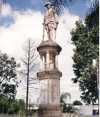 The masons for the monument were PJ Lowther and Sons of Brisbane, who were also responsible for memorials in Brisbane (the pedestal for the South African memorial), Blackbutt, Murgon, Goodna, Mount Perry and Tiaro. It is possible that the monument was actually carved by Charles Lowther, sculptor son of this Brisbane masonry family, and an ex-serviceman who fought with the Australian Light Horse in the First World War.[1]