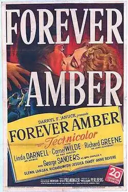 Forever Amber is a 1947 American romantic historical drama film[5] starring Linda Darnell and Cornel Wilde.[6] It was based on the book of the same title by Kathleen Winsor. It also starred Richard Greene, George Sanders, Glenn Langan, Richard Haydn, and Jessica Tandy.