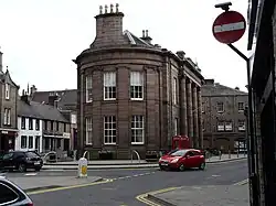 The first municipal building in the town was a medieval tolbooth which was primarily used to the detention of prisoners and which dated back at least to the 16th century.[2] In the early 1660s, 42 women were tried for witchcraft at the tolbooth and, in some cases, found guilty and executed by strangulation.[3] In the late 1770s the burgh officials decided to demolish the dilapidated tolbooth and to erect a new building in its place.[2]