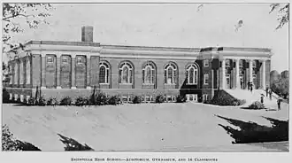 The former Reidsville High School, also known as Reidsville Junior High School and Reidsville Middle School, is a historic school building located at Reidsville, Rockingham County, North Carolina. It was designed by architect Willard C. Northup and built in 1923. It is a three-story, L-shaped, brick building with a combination of Colonial and Classical Revival stylistic features. A matching one-bay addition was built in 1941. It features a two-story tetrastyle portico of Tuscan order columns and terra cotta trim. It ceased use as a high school in 1960, with the construction of Reidsville High School and the building closed permanently as a school in 1980.[2]