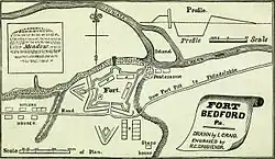 Fort Bedford was a French and Indian War-era British military fortification located at the present site of Bedford, Pennsylvania. The fort was a star-shaped log fortress erected in the summer of 1758.