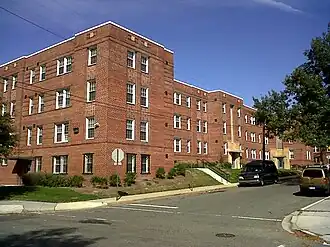 Fort View Apartments, formerly known as Fort Stevens Place, is an historic structure located in the Brightwood neighborhood of Washington, D.C. The apartments were designed by architect George T. Santmyers in the modernist architectural style with some art deco elements.[3] They overlook Fort Stevens Park. Completed in 1939, the apartments originally rented for between $47.50 and $73.50 per month.[4]