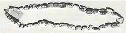 The animal remains were dominated by deer bone. Also present were raccoon, muskrat, turtle, fish and clam, as well as the dog burial.[1] These remains were not modified into tools like the bone tools described in the Artifacts section below, and may be considered food remains or, in the case of the dog, possibly the remains of ceremonial activities. Dog sacrifice was observed to have ceremonial and religious implications in early Native American tribes.[3]