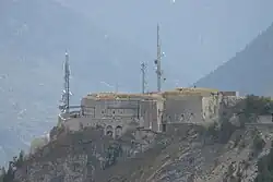 In 1944 the fort was used by the French Forces of the Interior (FFI) as an artillery position. The fort's peacetime barracks have been retained as high-altitude quarters for the 93rd Mountain Artillery Regiment (Regiment d'Artillerie de Montagne (RAM)) of the 27th Mountain Infantry Brigade.[4]