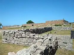 The Fortaleza de Santa Teresa, or Fortaleza Santa Tereza is a military fortification located 36 km (22 mi) south of Chuy and 305 km (190 mi) northeast of Montevideo on Route 9, in the Rocha Department of eastern Uruguay. It lies about 800 m (2,600 ft) from the coast at Playa la Moza, almost halfway between Angostura (to the south) and La Coronilla (to the north), north of Punta del Diablo and roughly 4 km (2.5 mi) northeast of the northeast bank of the Laguna Negra. It lies within the Santa Teresa National Park. It was erected from October 1762 by the Portuguese, having abandoned the attempt at building a fort in Maldonado and leaving the Fuerte San Miguel.[1]