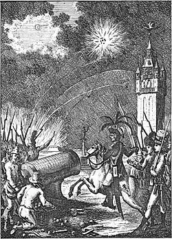 On Saturday 14 November, Arberg ordered a bombardment on the city from the Spanjaardenkasteel, which was now defended by several thousands of soldiers. This caused fires at several places. From inside the Kattenberg barracks, Lunden tried to alert his allies to his precarious position by firing several cannon shots, but they were lost in the clamour of battle. A detachment of a hundred soldiers which he ordered to sally forth, was caught and neutralised.[10] At dusk, new attempts at plundering were made from the Spanjaardenkasteel, but the defenders were prepared and drove them back, inflicting heavy losses.[11]