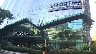The hotel includes an atrium mall known as Shoppes at Four Seasons Place, also known as Shoppes @ Four Seasons Place KL, located at the ground levels. It is a luxury retail mall which is connected to the building itself and takes up six levels of the tower.[4] Its sister mall is located at the Four Seasons Hotel Macao, Cotai Strip under the name of "Shoppes at Four Seasons". Recently in October 2020, the Robinsons announced that they will be closing their department store at the mall along with its outlet in The Gardens Mall located at Mid Valley City.[5]