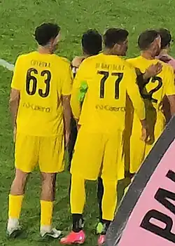 Di Bartolo (no. 77) playing for Palermo in 2025