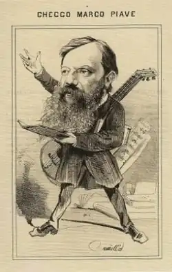 An example of the pressure which Verdi exerted on Piave was in the struggle to have the Venetian censors approve Rigoletto: "Turn Venice upside down to make the censors permit this subject"[3] he demanded, following that up with the admonition not to allow the matter to drag on: "If I were the poet I would be very, very concerned, all the more because you would be greatly responsible if by chance (may the Devil not make it happen) they should not allow this drama [to be staged]".[4]