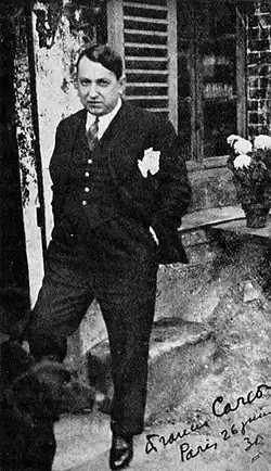 Francis Carco (born François Carcopino-Tusoli) (3 July 1886 – 26 May 1958) was a French author, born at Nouméa, New Caledonia. He was a poet, belonging to the Fantaisiste school, a novelist, a dramatist, and art critic for L'Homme libre and Gil Blas. During World War I he became an aviation pilot at Étampes, after studying at the aviation school there. His works are picturesque, painting as they do the street life of Montmartre, and often being written in the argot of Paris. He has been called the "romancier des apaches." His memoir, The Last Bohemia: From Montmartre to the Latin Quarter,[1] contains reminiscences of bohemian life in Paris during the early years of the 20th century.