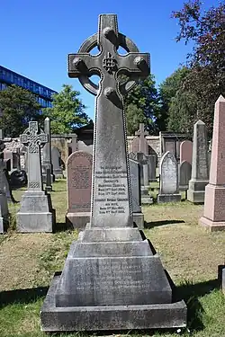 He died on 9 February 1908. He is buried with his parents and sister near the centre of the original north 19th century extension to Dean Cemetery in western Edinburgh beneath a Celtic cross. The grave lies in the south-west section.