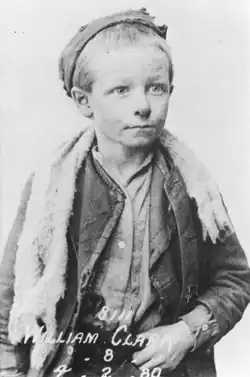 In July 1974, the National Portrait Gallery in London held an exhibition titled The Camera and Dr Barnardo.[3][4] The exhibition at the NPG's Carlton House Terrace site[Notes 1] mostly consisted of photographs of orphans from Dr Barnardo's Homes, orphanages for street children.[4] A total of 59,384 children passed through these orphanages from the time Thomas John Barnardo founded his first orphanage in 1867 until his death in 1905, and another 250,000 children were helped by him.[5] Around 1870, Barnardo hired a professional photographer to take pictures of every child admitted to his orphanages.[6][7] The photographs were kept in the orphanage albums and in the child's medical history.[6] The National Portrait Gallery selected about 3,000 for the exhibition of the approximately 55,000 images taken between 1870 and 1905.[6][7] The exhibition also included other examples of documentary photographs made in the same period, including the work of Thomas Annan and John Thomson; these were intended to provide a context for the fight against poverty in the Victorian era.[6][Notes 2][8][9]