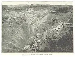 On 9 December 1874, Oats was appointed Cape Colony Government Mining Engineer at Kimberley, South Africa, at the age of 26.[3] Oats left for South Africa on a 20-month mission in January 1875.[6] The colony's government had recently passed ordinances in favour of small miners which prevented mine concession owners from imposing excessive rentals on the diggers and shopkeepers, and did not allow an individual or company to hold more than ten claims. The British government had overridden some of these measures.[7] The proprietors continued to accumulate claims and raise rents, causing mounting unrest.[8] Oats, as Provincial Engineer, gave the decisive opinion that "fostering a large number of individual holdings is most adverse to economy of working.[9] Oats made it clear that the restriction on the number of claims would be an obstacle to obtaining foreign capital.[10] He wrote of the 10 claim limit,