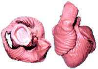 Rubber model of the folded ventricular myocardial band. The atria are absent from the model. On the left, the ventricular chambers separated by the septum.