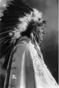 Fiske was apprenticed to Stephen T. Fansler, the post photographer at Fort Yates. When Fansler abandoned the studio in 1900, Fiske took over, aged 17, following into the footsteps of his illustrious predecessors, the legendary photographers Orlando Scott Goff and David Francis Barry. He continued to operate his studio, primarily at Fort Yates, until his death in 1952. Around the same time at the turn of the century, Frank's parents moved to a ranch near Fort Rice. Having grown up among the Lakota people of Standing Rock Indian Reservation Frank developed a great interest and admiration about the Sioux nation, their history and culture documenting many aspects of their lives through his photography. He was fascinated listening to the stories of the old warriors. In 1917 he published his first book "The Taming of the Sioux".[2] In 1918 Fiske enlisted in the army and briefly served in World War I, albeit he was not sent overseas. The following year, on his birthday he married Angela Cournoyer, a direct descendant of chief Forked Horn and fur trader Joseph Picotte. In 1921, their only daughter Francine was born. In 1933 Fiske published his second book, "Life and Death of Sitting Bull". Among Fiske's photographs is one of Red Tomahawk, Sitting Bull’s assassin, which later was reproduced and now is on North Dakota highway markers.