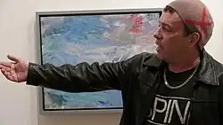 Frank Holliday (born 1957, North Carolina) is an American painter who became known in the New York City art world in the 1970s and 1980s. He is often associated with the East Village scene and associated with Club 57. His early career as an artist included working with Andy Warhol and close associations with artists such as Keith Haring[1] Ann Magnuson and Kenny Scharf.