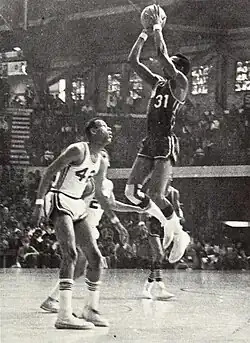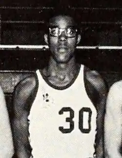 Kendrick shoots the ball over a defender while playing for Arsenal Tech High School in 1970