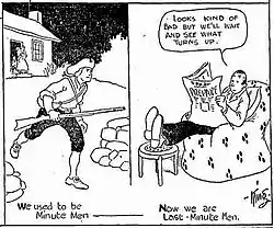 He entered country fair drawing competitions; a sign he drew for a hotel bootblack earned him only 25 cents, but it was seen by a traveling salesman who learned it had been drawn by the son of one of his customers. The salesman arranged an interview for King with a Minneapolis newspaper editor. King began earning $7 a week at the Minneapolis Times, and during his four years there, he doubled his salary while creating drawings and doing retouching. He also worked as a courtroom sketch artist.[2] On March 17, 1905, he gave a chalk talk at a Minneapolis St. Patrick's Day celebration.[1]