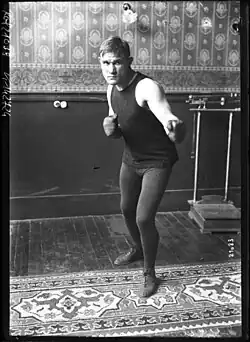 He started boxing training early and after winning an amateur tournament at East Pittsburgh's Wilmerding Athletic Club was recognized to have boxing promise by local boxing mentor George Engel.[5] He began his amateur career as early as 1904, and in February 1905 had three round wins on points in Pittsburgh against Frank Walton, and James Harris.[6][7]