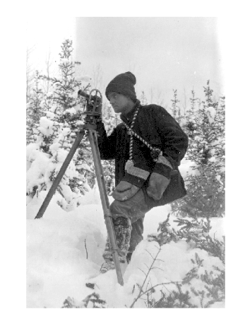 The construction of the Grand Trunk Pacific Railway caused a great deal of interest in Central and Northern British Columbia, and settlers were arriving looking for agricultural land, which needed to be surveyed before it could be sold or pre-empted. The equipment the surveyors used would be considered simple by today's standards, but it was remarkably accurate: a transit and a 66-foot length of chain (80 lengths to a mile). The pioneer surveyors did more than survey land, they also recorded the topography, soil conditions and potential uses of the land, information that was a necessity for the government and land-seekers alike.[1]
