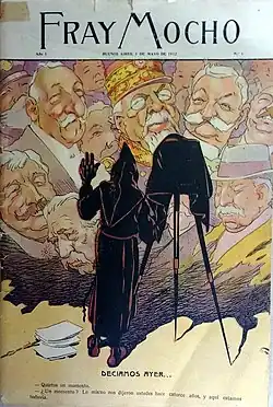 Fray Mocho was an Argentine weekly magazine that published general interest topics. Its first number was published on May 3, 1912, with historian and journalist Carlos Correa Luna being its first director. Fray Mocho's staff included former collaborators of Caras y Caretas who had left the magazine in disagreement with its editorial line.[1]