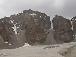 Free Korea Peak (Russian: Пик Свободная Корея, romanizedPik Svobodnaya Koreya), is a mountain in the Kyrgyz Ala-Too Range of the Tian Shan. It is located in Ala Archa National Park in Kyrgyzstan.[2] It is one of the most famous peaks in the former Soviet Union, with a 900m wall on its northern face that is famously challenging to climb.[3]
