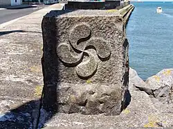 It is delimited in the north by the department of Landes, in the west by the Bay of Biscay, in the south by the Southern Basque Country and in the east by Béarn (although in the Béarnese village of Esquiule, Basque is spoken), which is the eastern part of the department. Bayonne, Anglet, and Biarritz form the BAB (Bayonne-Anglet-Biarritz) agglomeration, while Saint-Jean-de-Luz is another major town, all included in the Basque Eurocity Bayonne-San Sebastián Euroregion.[4][5] It is a popular tourist destination and is somewhat distinct from neighbouring parts of the southern Basque Country, since it was not industrialized as Biscay or Gipuzkoa and remained agricultural and a beach destination.