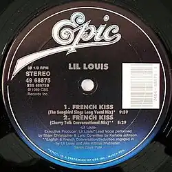 "French Kiss" is a song by American DJ and record producer Lil Louis, released in July 1989. It is written by Marvin Burns and Karlana Johnson, and was a European and American hit played widely in clubs, spending two weeks at number one on the US Billboard Dance Club Play chart in October 1989. The song became a crossover pop hit, peaking at number 50 on the Billboard Hot 100. It was also a mainstream pop hit in several European countries, where it entered the top five in 10 countries. In the United Kingdom, where the song peaked at number two, it was banned by the BBC.[5]