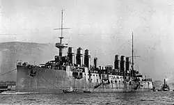 Jeanne d'Arc was an armoured cruiser built for the French Navy (Marine Nationale) at the end of the 19th century, the sole ship of her class. Completed in 1903, she was initially assigned to the Northern Squadron (French: Escadre du Nord), although she was transferred to the reserve fleet before the end of the year. The ship was recommissioned for a few months in mid-1905 and was transferred to the Mediterranean Fleet (Escadre de Méditerranée) in mid-1906 and served as a flagship for the next several years. Jeanne d'Arc was assigned to the reserve in mid-1908 and modified to serve as a training ship for naval cadets of the Naval Academy (École Navale). In 1912, she made the first of two lengthy training cruises.