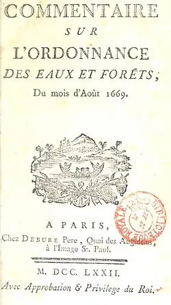 Commentary on the Ordinance on Eaux et Forêts of 1669; published in 1772 with the approbation of the King