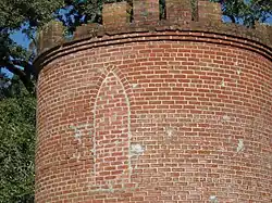 Since then trespassers have carved names or initials into almost every brick of the tower within their reach.[4] Some dates go back over 100 years.[5] In 1970, the landowner bricked in the windows to protect the structure from vandals.[5] Frenchman's Tower stands on Old Page Mill Road, midway between Foothill Expressway and Interstate 280, in Santa Clara County, California, within a strip of land within the borders of Palo Alto on land now owned by Stanford University.[6]