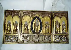The church was heavily rebuilt in 1776, when it acquired the present external appearance. A clock tower was added to the western façade, the windows were enlarged, the walls all made the same heights and a new roof was constructed. Internally, the church still retains much of its medieval appearance. The vaults are from the 14th and 15th century; a few 15th-century frescos depicting the apostles still decorate the walls.[2]