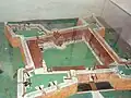 The initial plan had the shape of a rectangular stone polygon with two pentagonal bastions on the shorter sides at the corners, separated by curtains, and topped by watchtowers. By 1740, the base had developed, featuring a star format with four bastions pentagonal vertices in Vauban style,[12] with internal walls and service buildings erected in irregular stonework. There was a chapel on the mound, and on one of its sides, there is a deep well.[5] The perimeter of the walls total 300 metres (980 ft).[4]