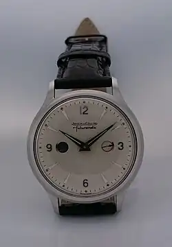 The Futurematic is a self-winding[1] wrist watch that was manufactured between 1951 and 1959 by the Swiss watch manufacturer Jaeger-LeCoultre. It was the world's first watch without a crown for winding the mainspring, instead having a flat crown on the back that was used solely for setting the time.[2]