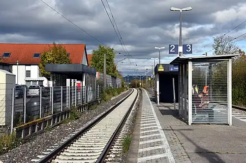 Gäufelden station (German: Haltepunkt Gäufelden) is a railway station in the municipality of Gäufelden, located in the Böblingen district in Baden-Württemberg, Germany.