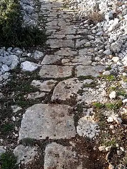 The building with orthogonal masonry has six rooms. The windows are supported by vaults. There is a big cistern under the front yard of the building. There are two sarcophagi, the ruins of an olive press and a mill around the building.[1]
