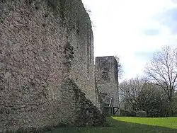About 25 m (82 ft) behind the curtain wall, currently nearly flat, runs the old inner ditch. Behind the inner ditch, portions of the inner castle still remain. These include debris, barriers and the ruins of the keep.